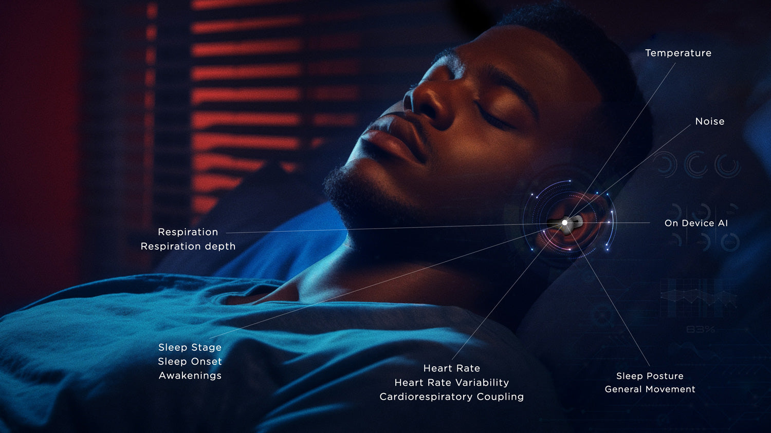 Real-time sleep stage detection, biometric insights (12 physiological signals), smart ANC and noise masking, all-night battery.
