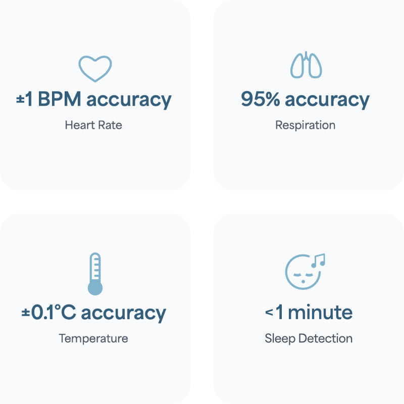 High-end sensors monitor sleep stages, heart rate variability, breathing patterns, movement and more with unprecedented precision.